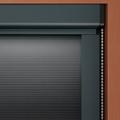 It is an interior blind with a blackout fabric – materials that completely block the passage of light. To ensure maximum privacy, it is installed with side channels, fitting closely to the window and creating a clean, modern look.